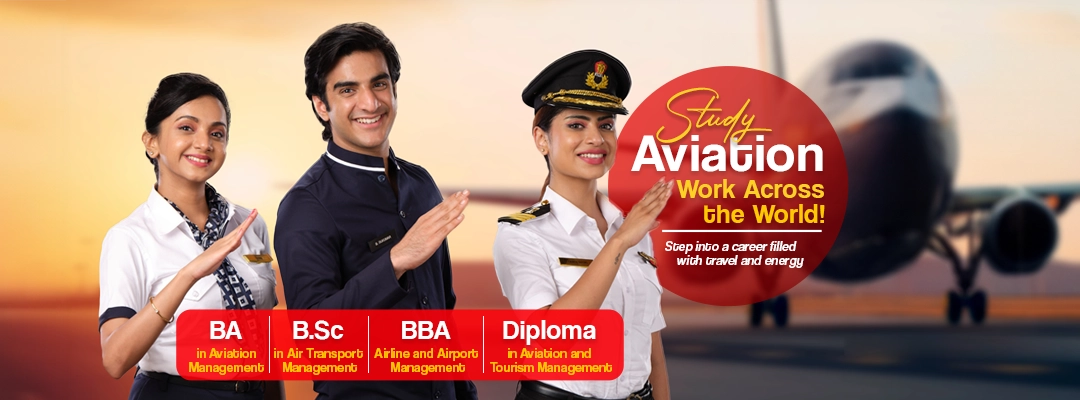 B.Sc Air Transport - (Eligibility-Students who have successfully completed 12th Standard / HSC / 10+2 (or equivalent Level of Examination with Science & Maths) from any recognized Board/ University.) BBA Airline and Airport Management - (Eligibility-12 th Regular Schooling) Bachelor in Aviation - (Eligibility-Passed 10+2 or equivalent from a recognized board with a minimum aggregate of 50%. Background in science, commerce, or arts is acceptable OR Passed 10 + 3-year Engineering Diploma) B.Sc in Aviation - (Eligibility--Successfully completed 10+2 or equivalent from a recognized board with a minimum aggregate of 50%. Students from science and math’s are eligible to apply) MBA Airline and Airport Management - (Eligibility-Any UG Degree or an equivalent qualification) Diploma in Aviation & Tourism Management - (Eligibility: 10 th Regular Schooling) Diploma in Aviation and Hospitality - (Eligibility: Passed any degree with a recognized university) Diploma in Airport Management - (Eligibility: Passed any degree with a recognized university) Diploma in Cabin Crew & Airport Ground Operations - (Eligibility: Passed any degree with a recognized university)